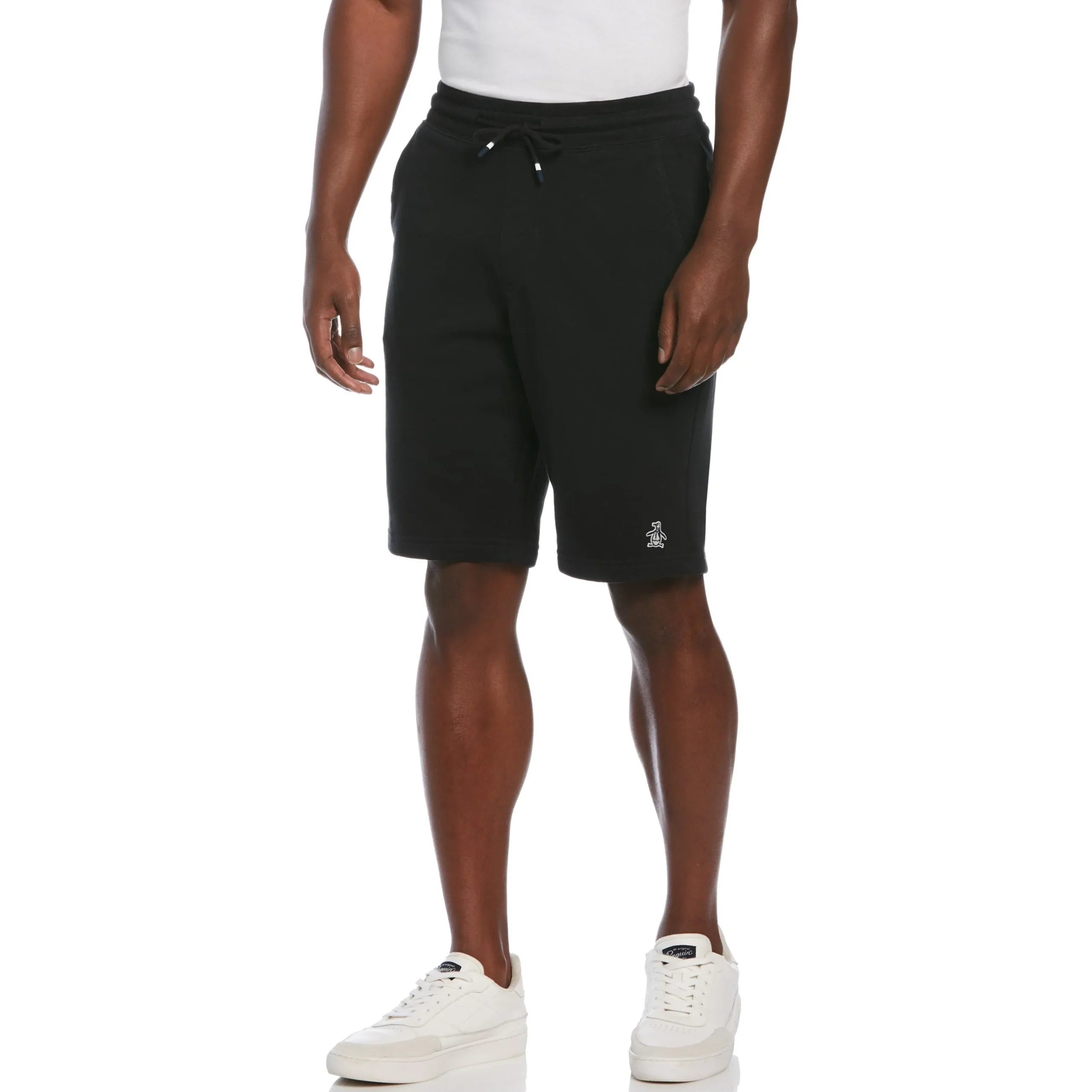 Whether you’re working out or hanging out, these slim fit Original Penguin men’s shorts have you covered. Fleece fabrication adds softness and warmth for lounge-level comfort and a drawstring waist offers a secure custom fit. Pete pops up on the left leg to add a fashionable finishing touch to these men’s casual shorts.