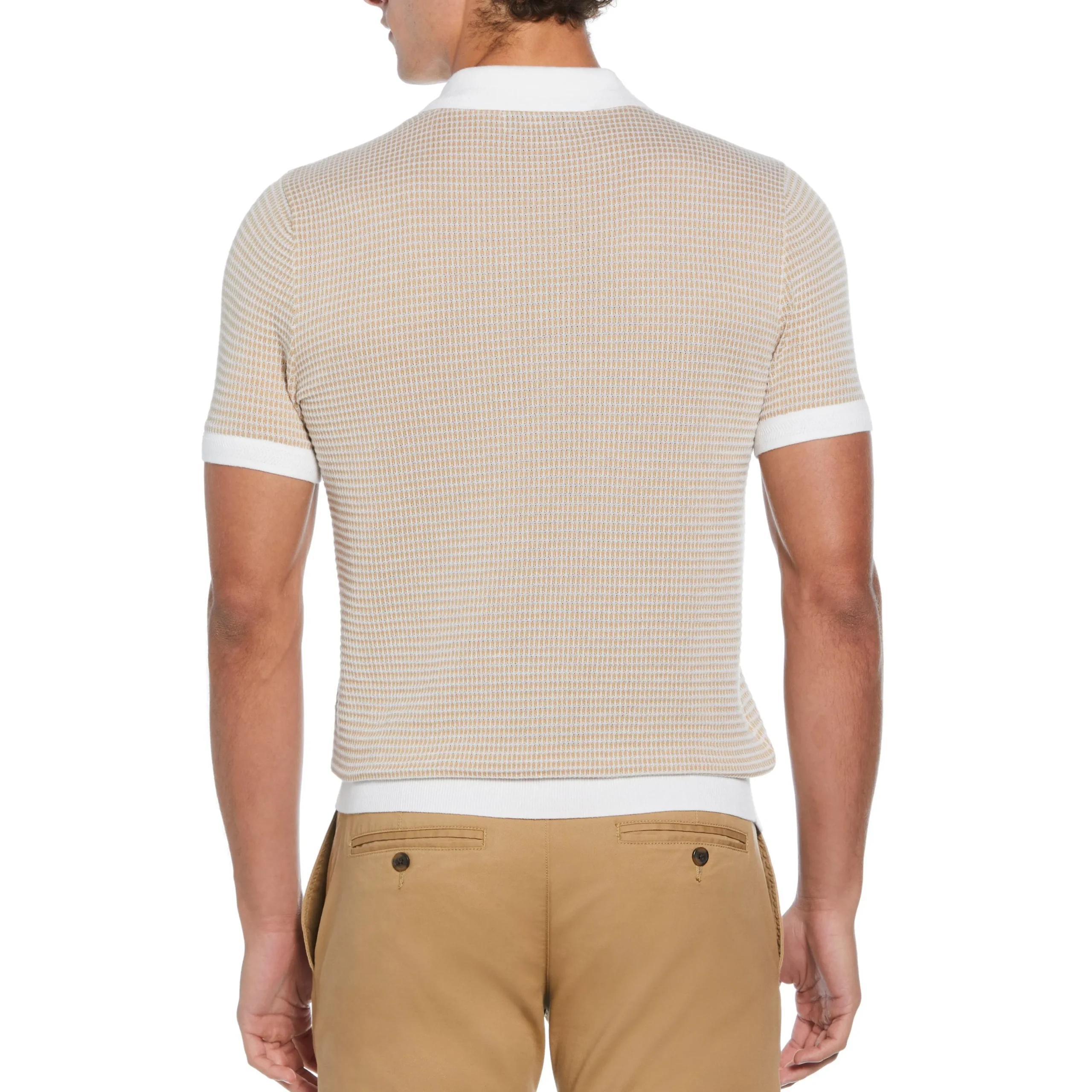 Indulge in the luxury of our All-Over Jacquard 1/4 Zip Sweater Polo. Crafted from 100% cotton, this polo boasts a sophisticated jaquard pattern that adds an elevated touch to any outfit. With a ribbed collar and 1/4 zip closure, this sweater offers both style and comfort. Machine washable for easy maintenance.