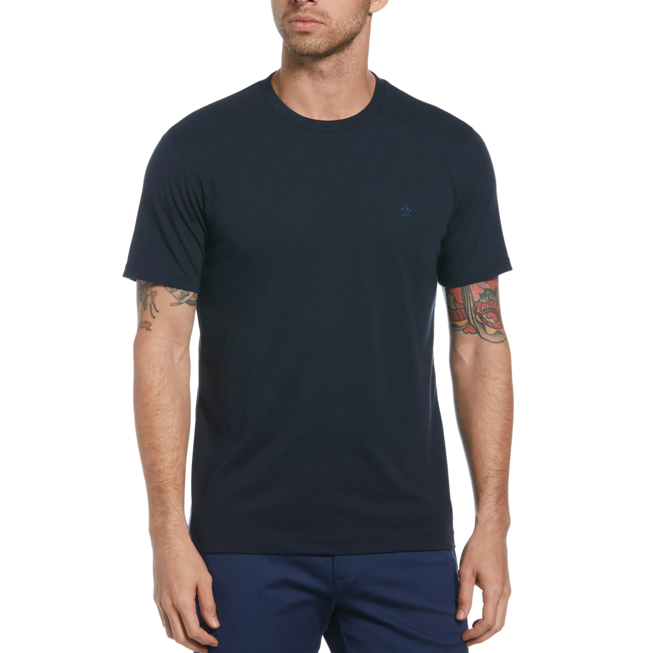 This Original Penguin cotton t-shirt for men has a flattering slim fit that’s designed to complement the modern man’s casual wardrobe. Made from soft and breathable cotton jersey fabric, this men’s t-shirt has a comfortable fit and a soft feel that adds a touch of sophistication to your casual ensemble. The short sleeve shirt effortlessly combines fashion and functionality to upgrade your everyday casual wear.