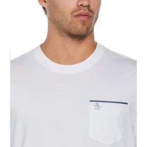 This men’s tee is a versatile wardrobe basic with an Original Penguin update. The soft and breathable 100% cotton jersey fabric is a comfortable choice for your active lifestyle and the slim fit creates a flattering modern silhouette. This solid crew neck tee has a left chest pocket with chambray trim and an embroidered Pete logo for an elevated casual look.