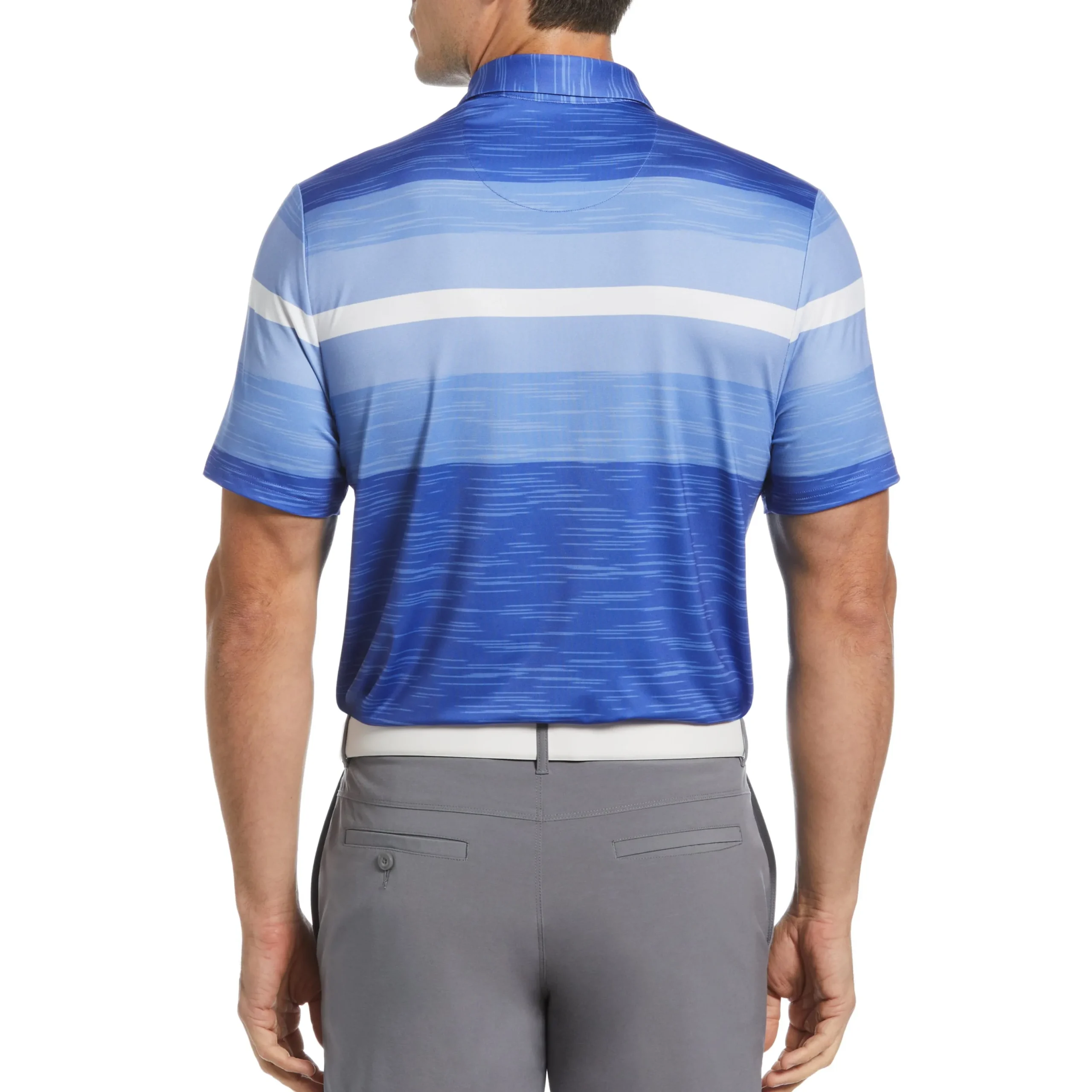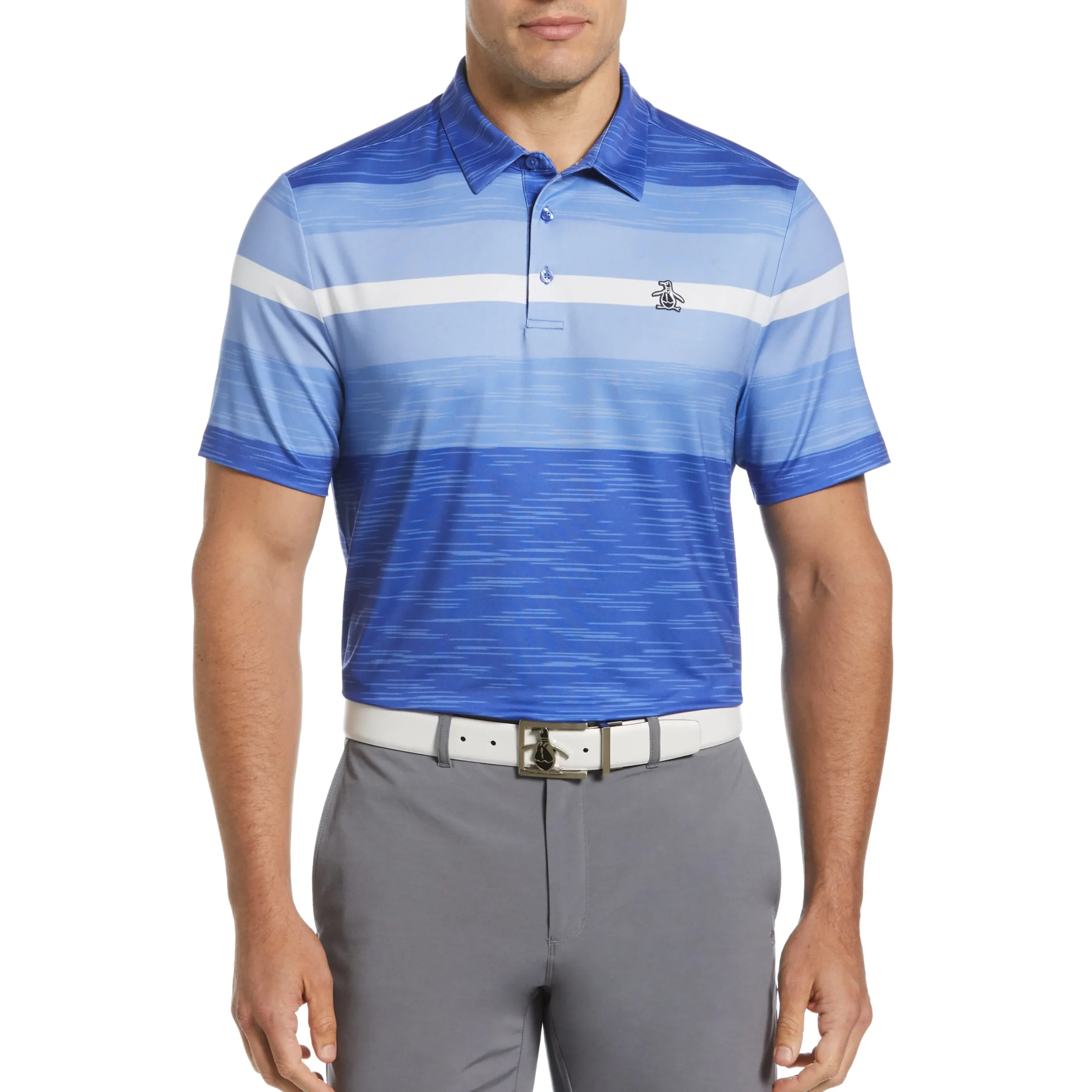 Refresh your casual wardrobe with this cool color blocked polo shirt from Original Penguin. Designed for all-day comfort, this polo top is crafted from a soft, lightweight jersey knit fabric. It has moisture-wicking technology to help keep you feeling dry when you’re out in warm and sunny weather. A hint of stretch in the material provides a flexible fit, and the fabric is made from 92% recycled polyester for an eco-friendly twist. Pair it with jeans, shorts or chinos for effortless everyday style.