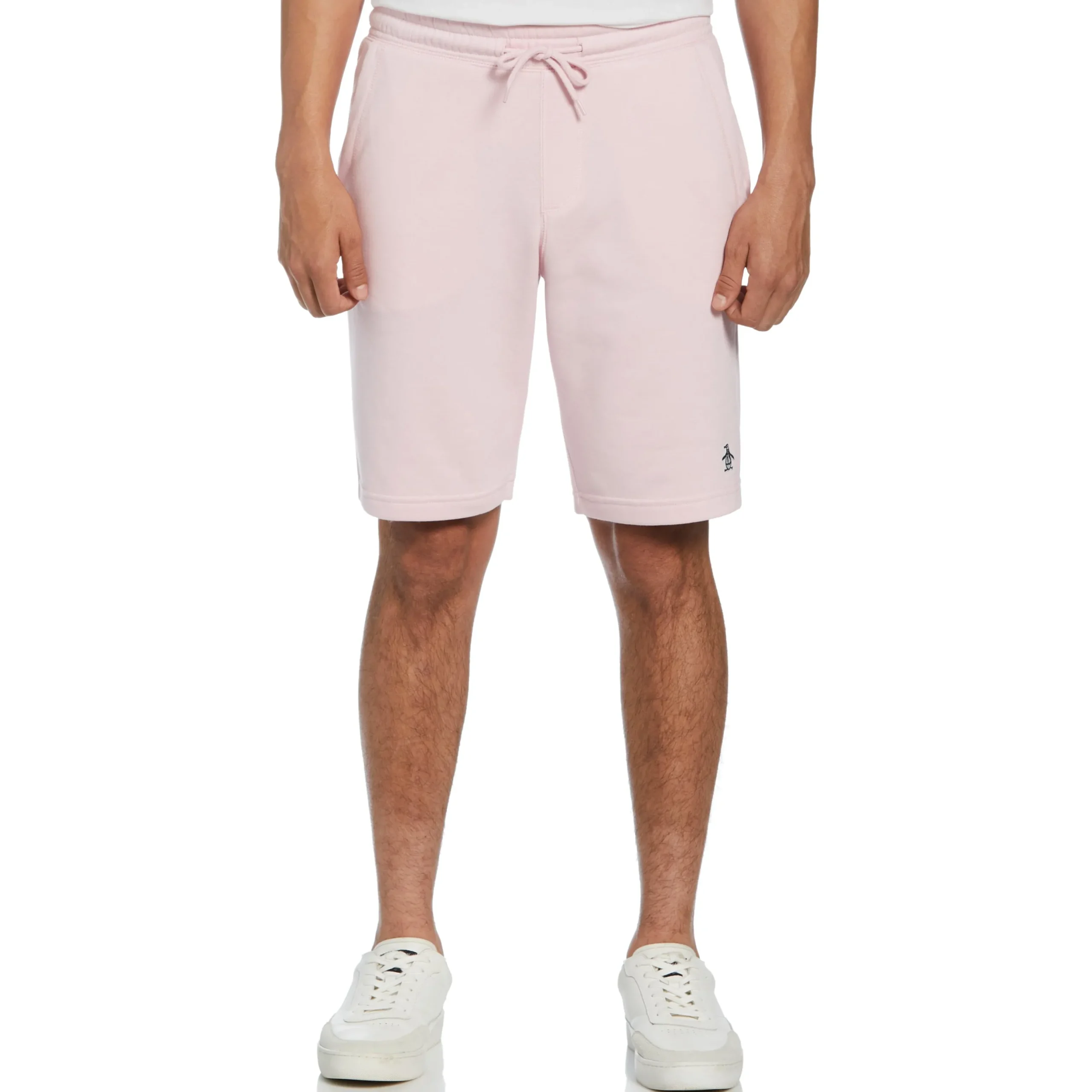 Whether you’re working out or hanging out, these slim fit Original Penguin men’s shorts have you covered. Fleece fabrication adds softness and warmth for lounge-level comfort and a drawstring waist offers a secure custom fit. Pete pops up on the left leg to add a fashionable finishing touch to these men’s casual shorts.