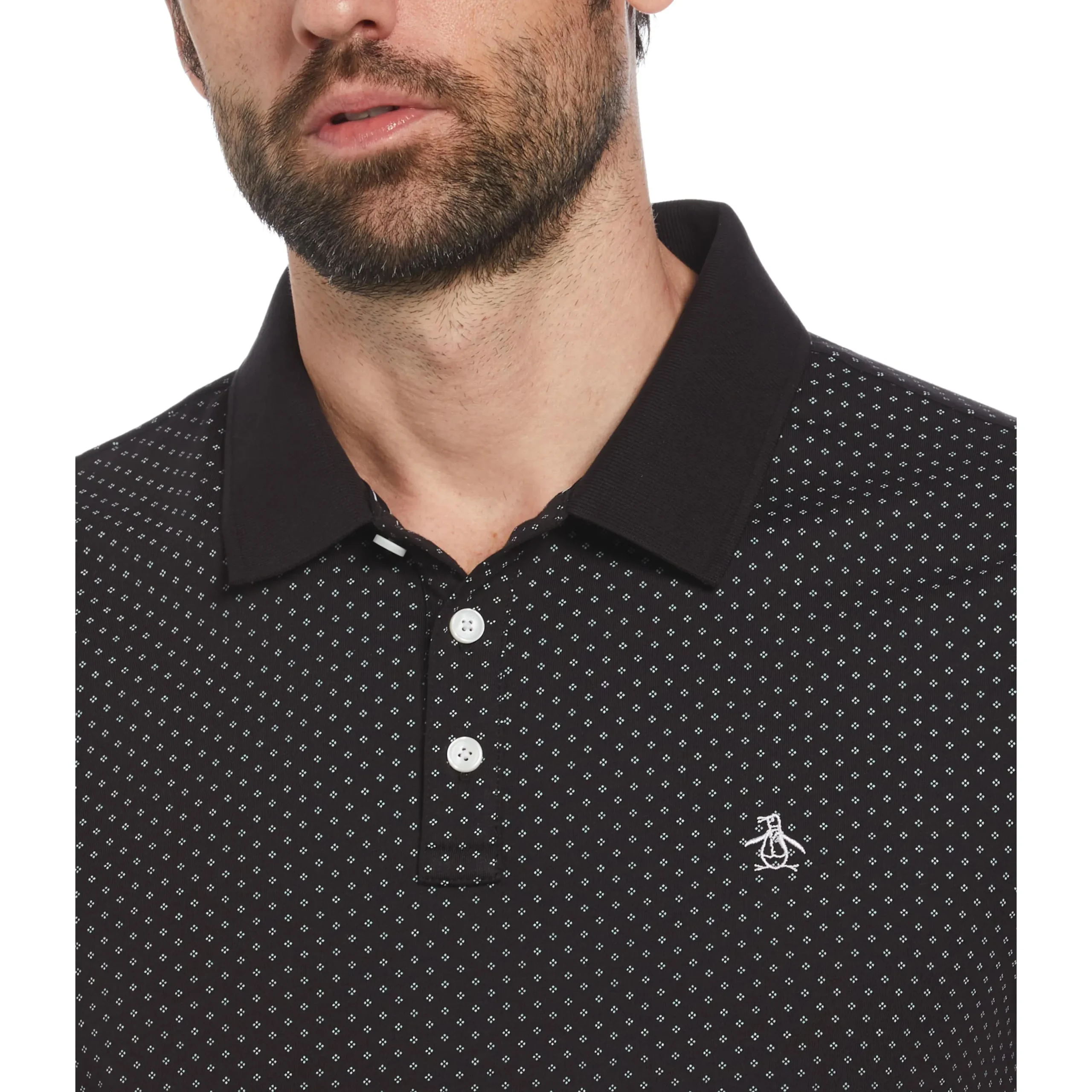 Printed with tiny diamonds, this Original Penguin men’s polo shirt will quickly become one of the crown jewels of your casual wardrobe. Made from 100% cotton jersey, the comfortable polo collar shirt offers both breathability and impressive softness. Great for everything from a dinner date to get-togethers with the guys, this polo shirt for men is a versatile piece you can wear in any season or setting. Our mascot Pete the penguin pops up on the chest in a sticker-inspired logo, adding a fun accent to the design.