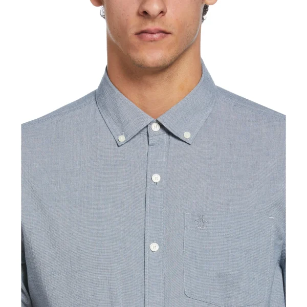 Experience breathable comfort with our EcoVero oxford shirt. Made of 97% cotton and 3% elastane, this slim fit shirt features a seersucker fabrication for a lightweight and stylish look. Perfect for any occasion, from casual to dressy. Machine washable for easy care.