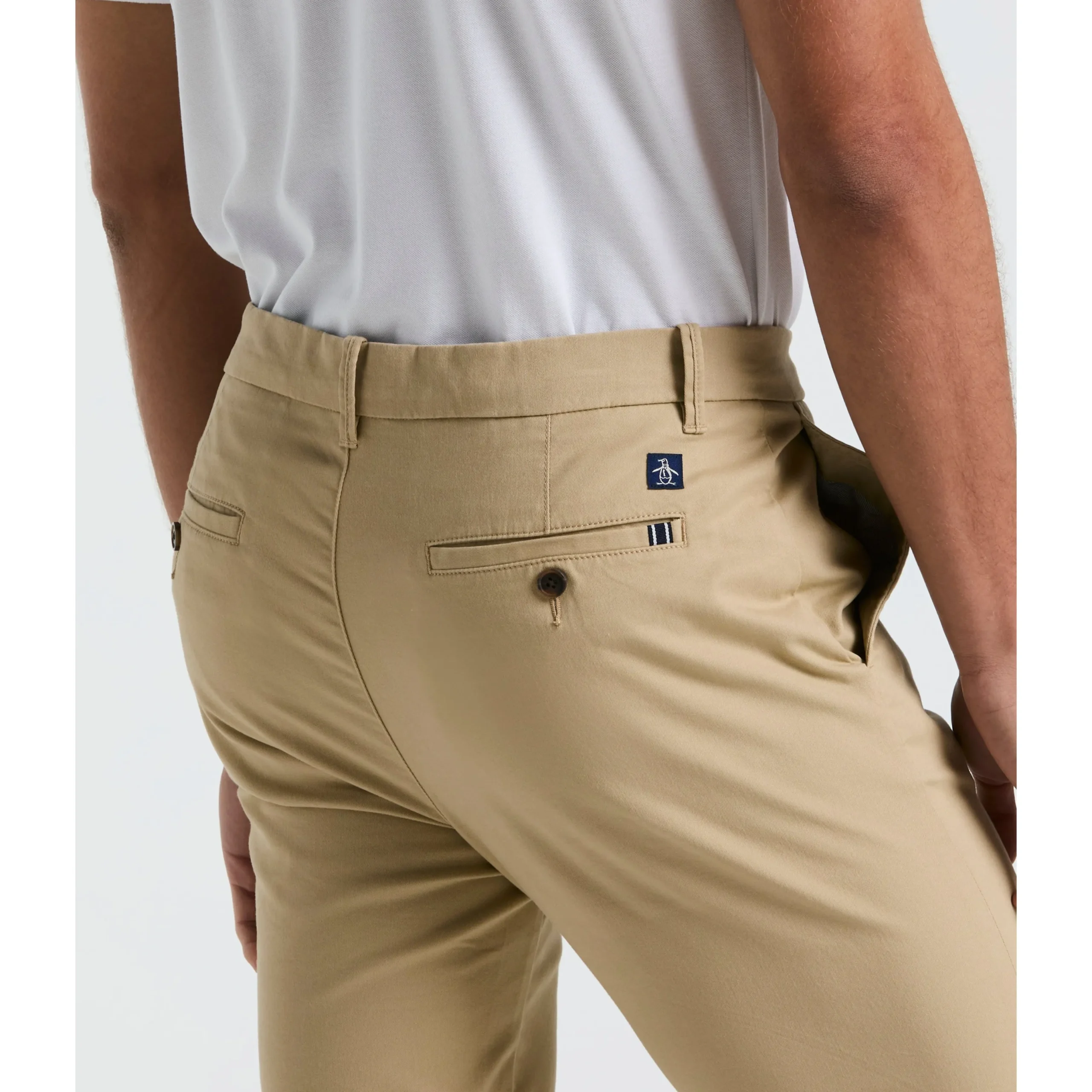 Designed to pair effortlessly with nearly any top, these versatile solid-colored men’s chino pants from Original Penguin will quickly become a core part of your casual wardrobe. The sleek flat front men’s pants are made from a lightweight twill fabric to help you move through the day smoothly. The material contains 38% Tencel™ for added comfort and durability.