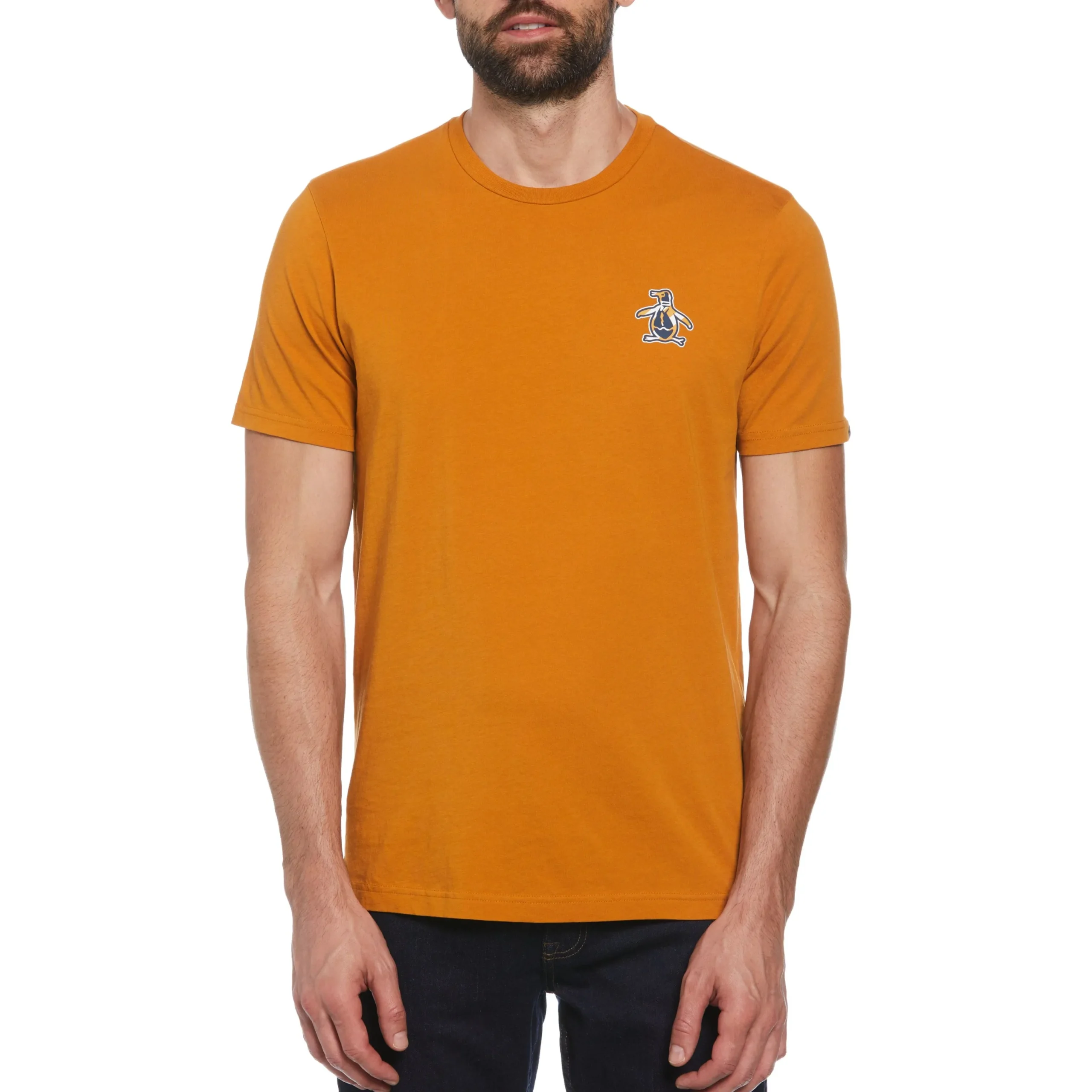 A retro-inspired Pete logo on the chest adds a fun, eye-catching accent to this classic men’s t-shirt from Original Penguin. The men’s tee is crafted with jersey knit fabric, which gives it an impressively soft and lightweight feel. The shirt is made from 100% cotton for breathable comfort, and it’s finished with a patch on the left sleeve that features another cameo from Pete.