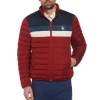 Stay warm and comfortable in this Original Penguin lightweight filled puffer jacket. Plain weave fabrication adds durability, and a water-resistant, high-density surface helps keep you dry. Zippered pockets help keep your items secure, while the high mock neck collar offers extra protection from the elements, so nothing holds you back on cold days.