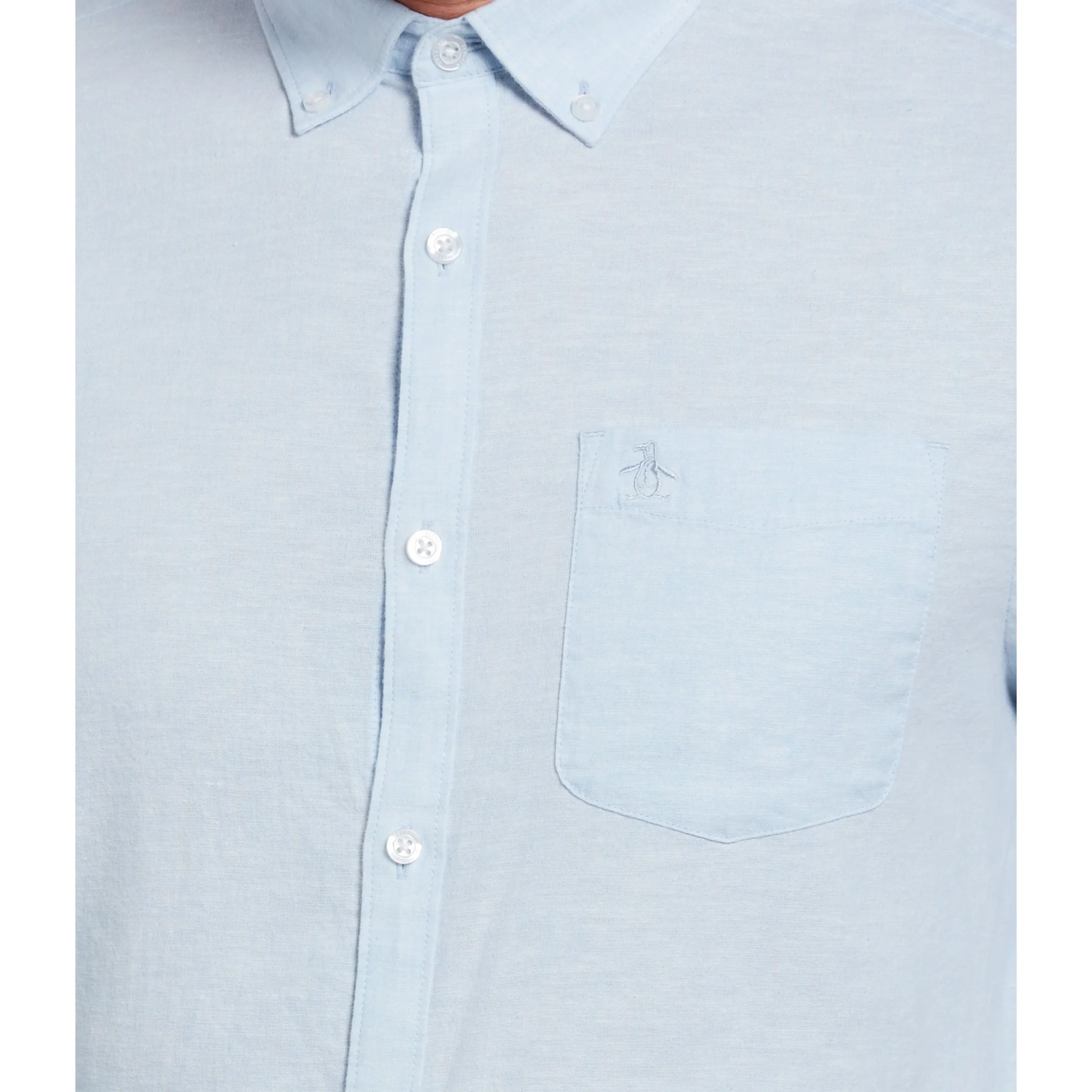 This Original Penguin long sleeve button-down shirt is the ultimate choice for both easy style and all-day comfort. With its slim fit design, button-down collar and durable plain weave fabric, this men’s button-down shirt is the ideal choice for any occasion. The stretch fabric ensures maximum comfort and ease of movement while the timeless solid color design is easy to pair with a range of bottoms, making it a must-have essential for any wardrobe.