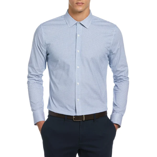 Get ready to checkmate your style game with our Micro Check Print Dress Shirt. Made with 60% Cotton and 40% Polyester, this slim fit shirt offers the perfect blend of comfort and style. The jersey fabrication adds a touch of softness, while the point collar elevates your look.