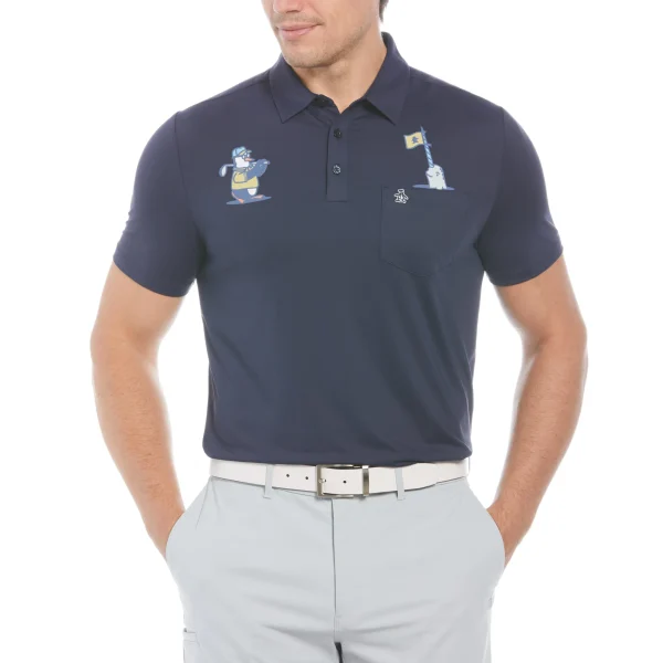 Upgrade your everyday rotation with this versatile, high-quality Original Penguin polo shirt for men that effortlessly complements any outfit. This short-sleeved polo t-shirt is made with a lightweight single knit fabric with added stretch to ensure maximum breathability and flexibility for all-day wear. Made from 90% recycled polyester sourced from plastic bottles, this men’s polo is a stylish choice you can feel good about.