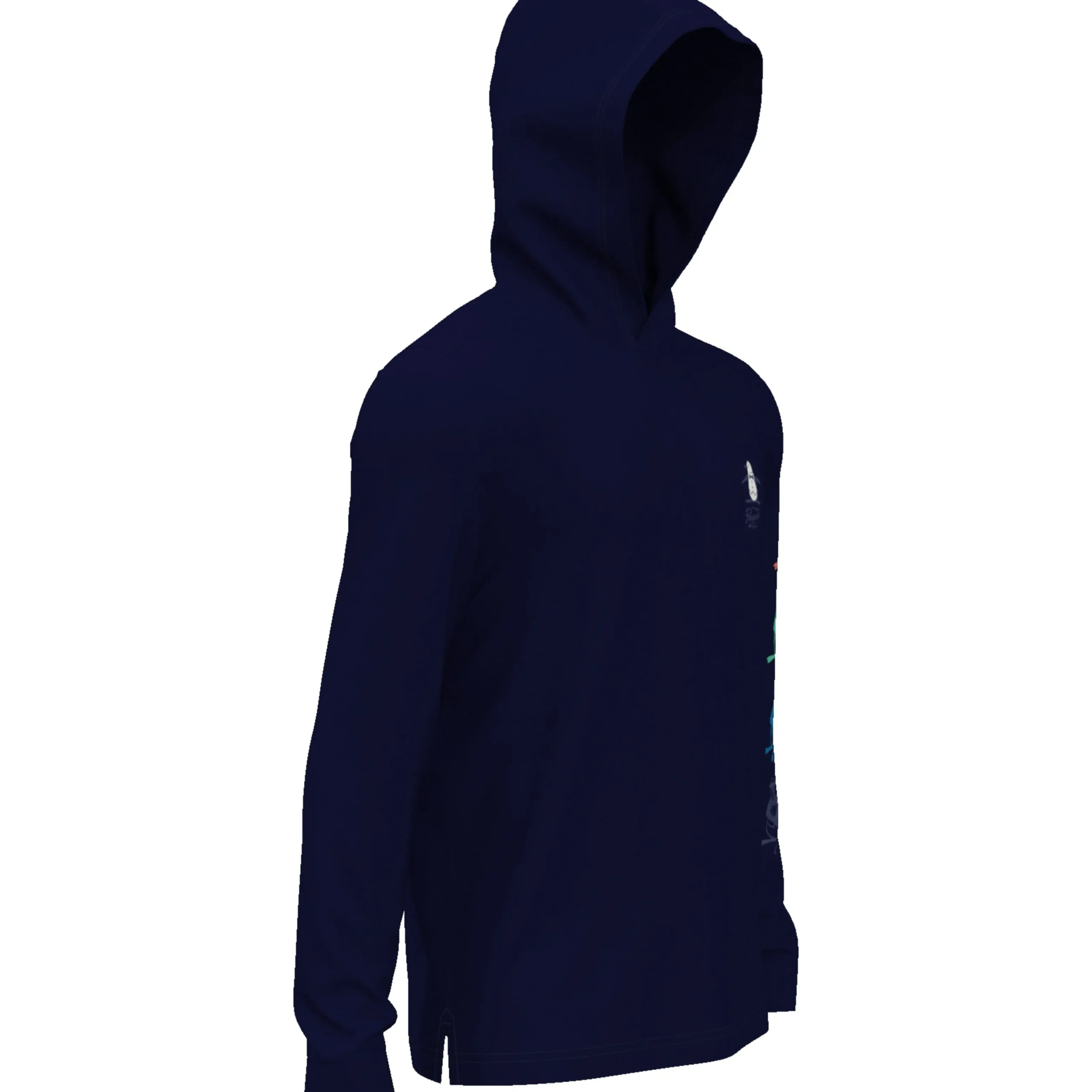 This Original Penguin men’s golf hoodie blends style and functionality. Made from recycled polyester and lightweight single knit fabric, this golf hoodie features moisture-wicking and stretch capabilities for ultimate comfort. The golf pullover also includes sun protection, and a unique Penguin Pete graphic down the arm for a sporty touch.