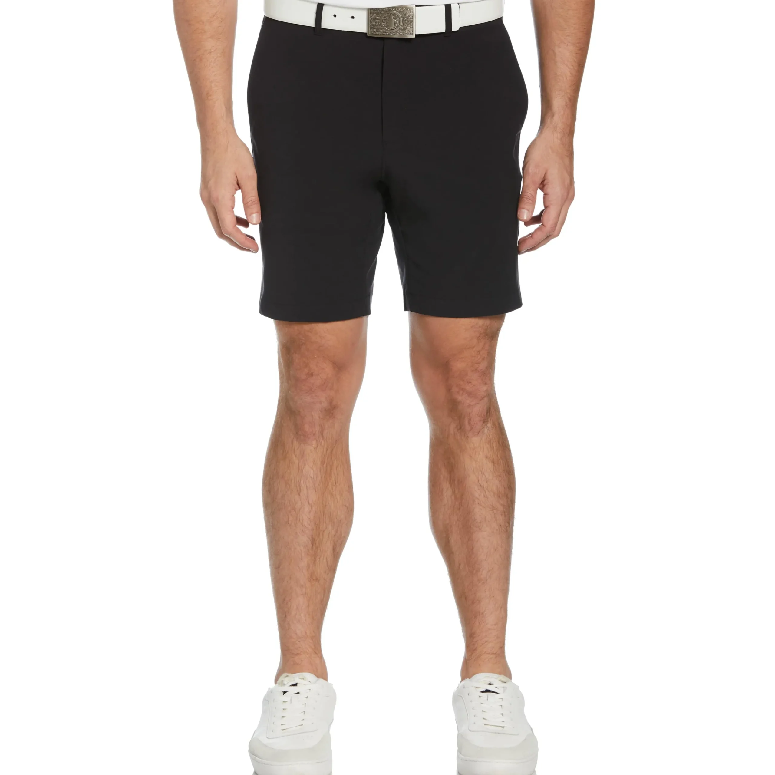 Keep your cool confidence going on the golf course in these performance golf shorts from Original Penguin. The solid-colored men’s shorts have a sleek flat front and slim design for a modern look. With 4-way stretch, you can bend and move in total comfort for a full range of motion. Moisture wicking keeps you dry when your game heats up. Plain weave fabrication makes these shorts a durable choice for regular wear on or off the course.