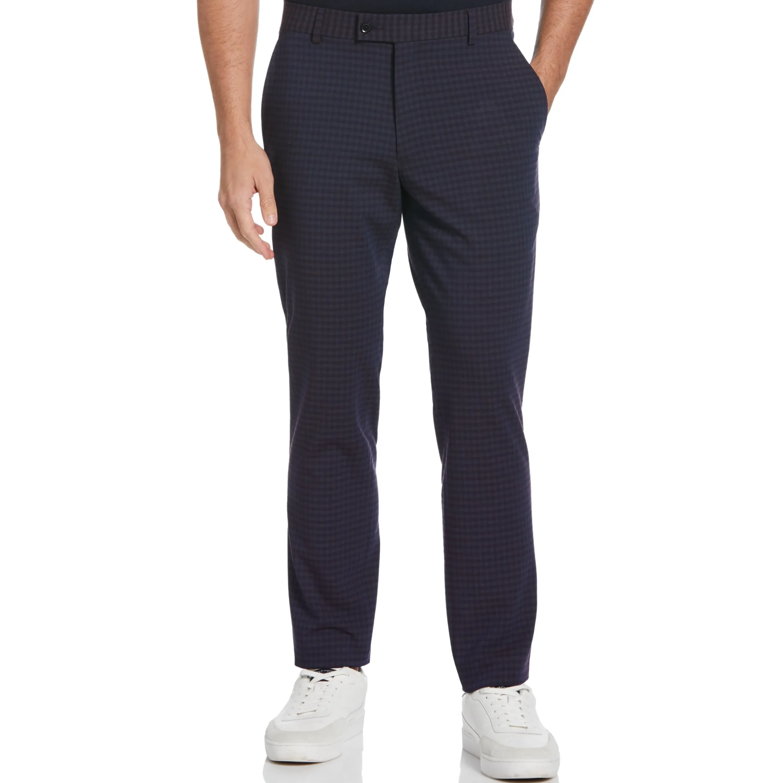 Get a tailored look without the tailor in these in these men’s dress pants from Original Penguin. A stylish plaid print brings adds dimension to these flat-front pants, while a tapered leg and fitted cut keep the style sleek. These slim-fitting trousers are made with lightweight construction in a durable plain weave fabrication and feature added stretch for all-day comfort.