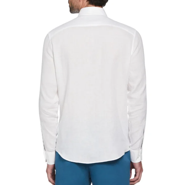 A smart everyday basic, this Original Penguin men’s long sleeve shirt is made from lightweight and breathable washed linen for impressive comfort in warmer weather. Plain weave fabrication gives the material the durability to last through season after season, while a button-down collar helps to keep your look neat and put-together. The casual design is finished with a chest pocket featuring our beloved mascot Pete the penguin in the corner, giving this timeless top his stamp of approval.